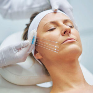การร้อยไหม การใช้ไหมละลายร้อยเข้าไปใต้ผิวหนัง โดยไหมจะมีตะขอเล็กมากๆ อยู่ ช่วยยกผิวหน้าขึ้น การร้อยไหมสามารถยกกระชับได้หลายส่วน